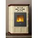 Der belüftete Keramik-Pelletofen Maria 13,5 kW mit raffinierten Dekorationen hat eine Leistung von 13,5 kW und heizt Räume und verleiht ihnen den klassischen und komfortablen Touch, den die Keramikbeschichtung schon immer inspiriert hat. Dieser Ofen nutzt Holzpellets als Energiequelle, wodurch Sie einen Raum schnell und kostengünstig heizen können. Im Pellettank platziert, ermöglicht diese Heizmethode eine langsamere Verbrennung. Dank seines integrierten Ventilators verteilt dieser Ofen die Wärme gleichmäßig und sorgt so für eine bessere Verteilung. Durch diese Belüftung erreichen Sie schnell die gewünschte Temperatur. Dieser belüftete Pelletofen reduziert zudem den Energieverbrauch und verspricht langanhaltende und angenehme Wärme. Seine vollständig Keramik-Beschichtung hilft, die Wärme zu speichern.