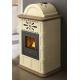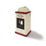 Der belüftete Keramik-Pelletofen Rosy mit 13,5 kW ist eine der leistungsstärksten Versionen der Steingutserie mit einer schlanken Linie und drei möglichen Beschichtungsfarben. Die Kuppel ist cremefarben, die dominierende Farbe des Ofens. Sie wertet nicht nur die Ästhetik auf, sondern hat auch die Funktion, die Pelletkapazität im Tank zu erhöhen und so die Gesamtautonomie zu erhöhen.