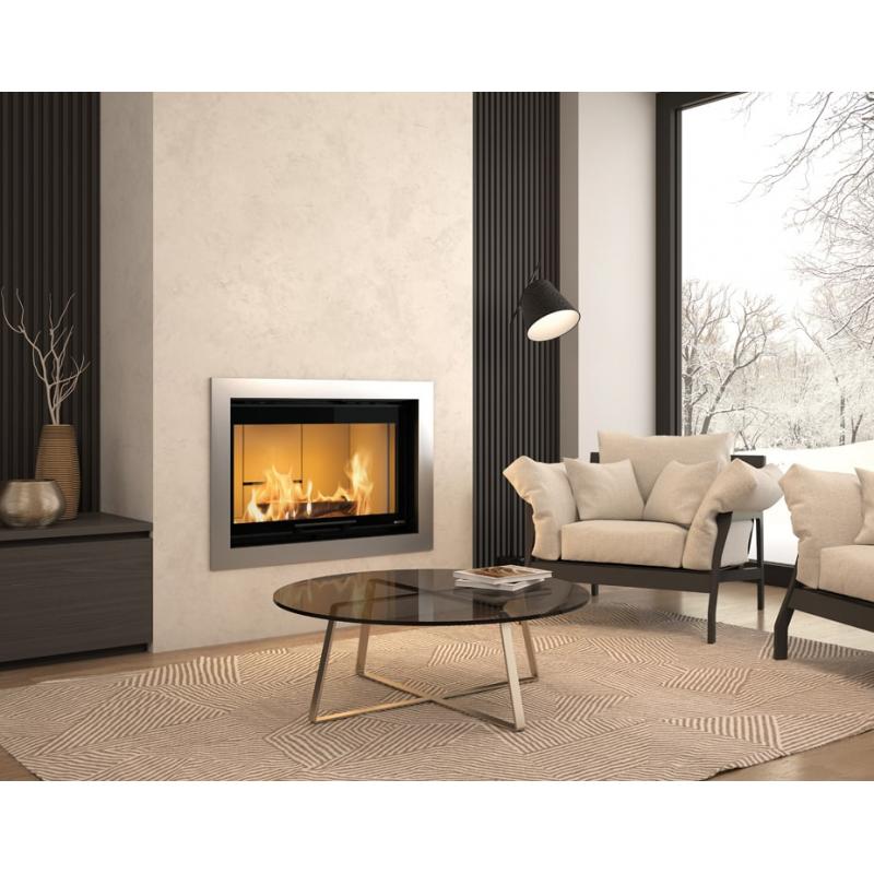 Dieser Holzeinsatz verfügt über einen direkten Lufteinlass und kann in BBC-Häusern installiert werden. Mit seinem Standardgehäuse kann dieser effiziente Heizkörper so installiert werden, dass er über diese 2 kanalisierbaren Auslässe Nebenräume beheizen kann.