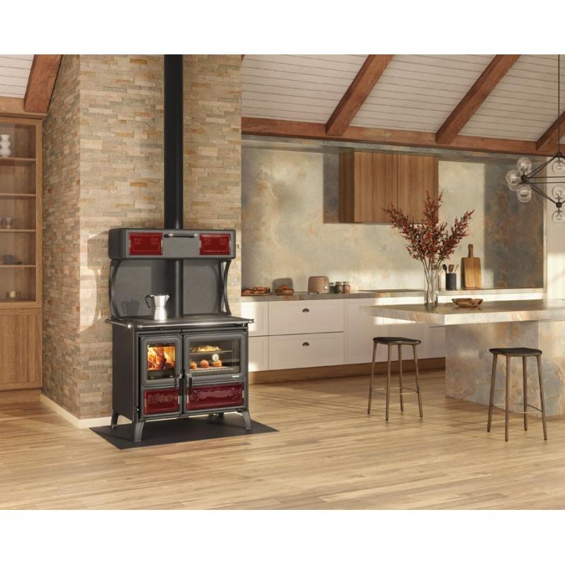 Der Holzofen Milly der Marke La Nordica bietet Ihnen die Möglichkeit, Ihr Zuhause auf bis zu 249 m3 zu heizen und gleichzeitig dank seines großen emaillierten 78-Liter-Ofens die Freude am Kochen über einem Holzfeuer wiederzuentdecken. Bereiten Sie alle Ihre Gerichte zu und entdecken Sie die Aromen der altmodischen Küche mit diesem herrlichen Holzofen neu.