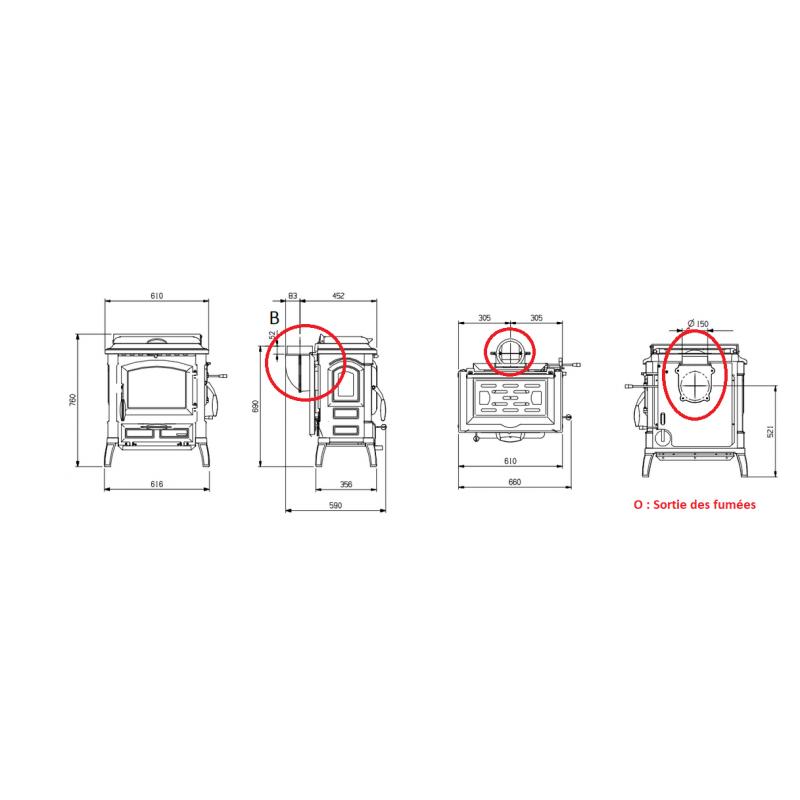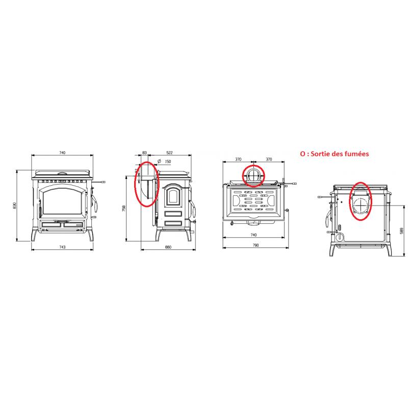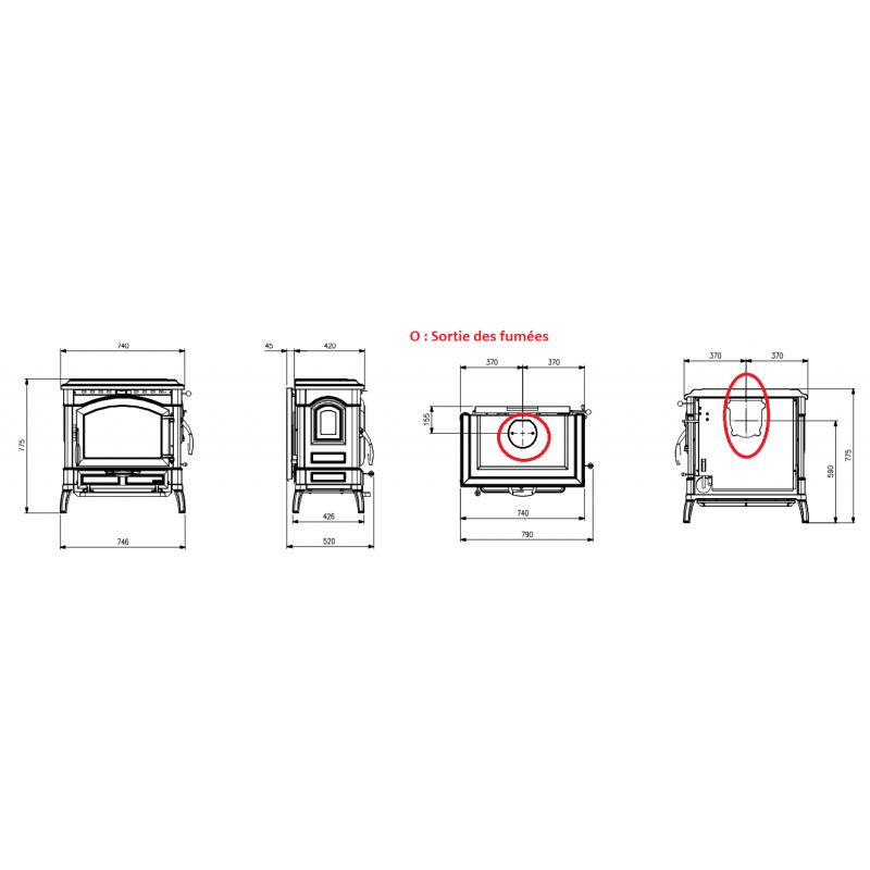 Technisches Diagramm des Holzofens – LA NORDICA Isotta Evo 14,5 kW
